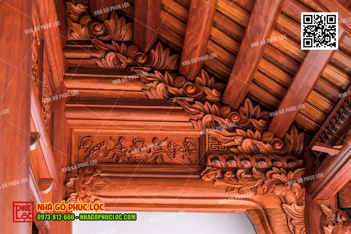Nhà gỗ cổ truyền Bắc Bộ thường có những mẫu hoa văn truyền thống và mang ý nghĩa sâu sắc. Một số mẫu hoa văn phổ biến có thể kể đến: