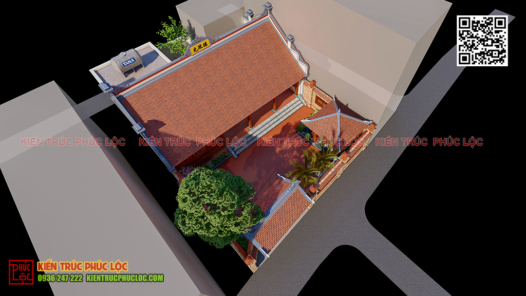Thiết kế 3D nhà thờ họ 3 gian kết hợp nhà ngang mái thái