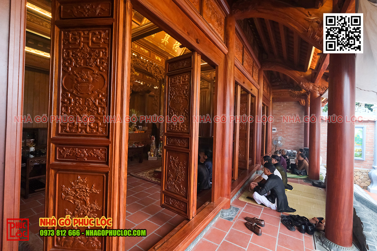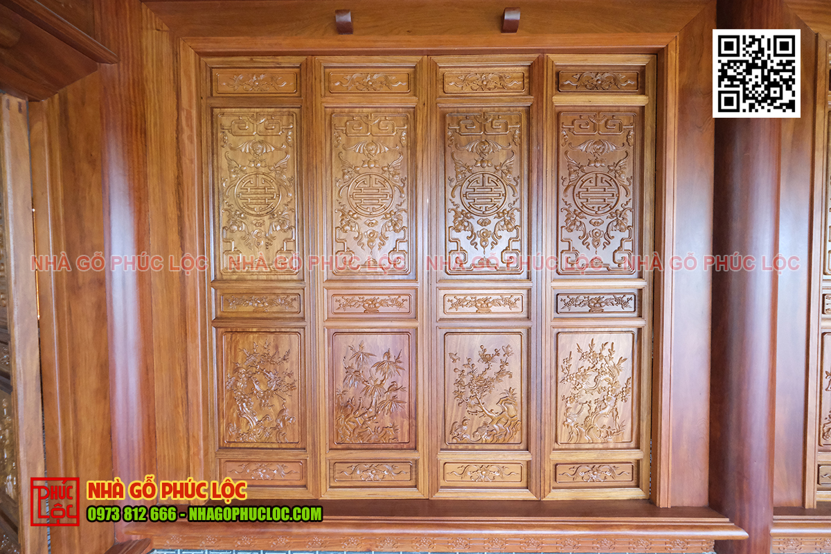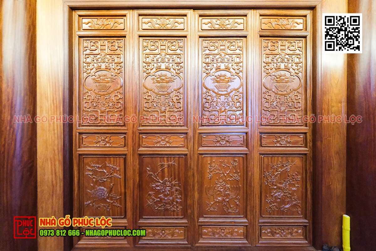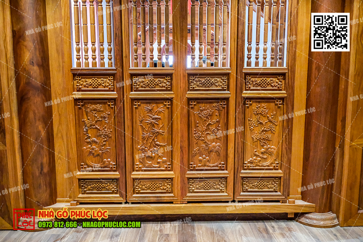 • Cửa bức bàn: Hoa văn Tứ quý được chạm khắc tinh xảo trên các cánh cửa bức bàn. Vị trí này thể hiện mong muốn về sự sung túc, an khang và trường thọ cho gia chủ.