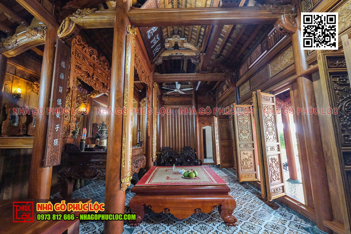 Nhà gỗ cổ truyền có thể là 3 gian hoặc 5 gian, được thiết kế thêm các chái ở bên cạnh tùy theo nhu cầu của gia chủ. Các chi tiết trang trí trong nhà gỗ cổ truyền thường được chạm khắc tinh xảo với các hoa văn truyền thống như: rồng phượng, tranh tứ quý, hoa sen, chữ Hán,…