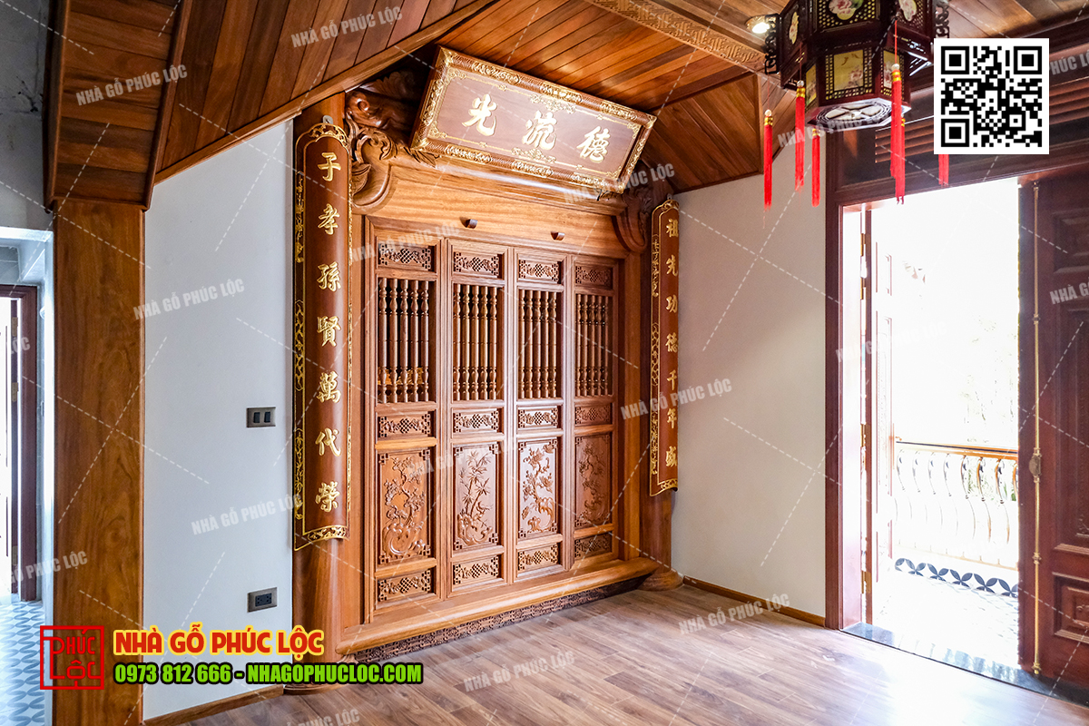 Cận cảnh hoa văn cửa bức bàn phòng thờ